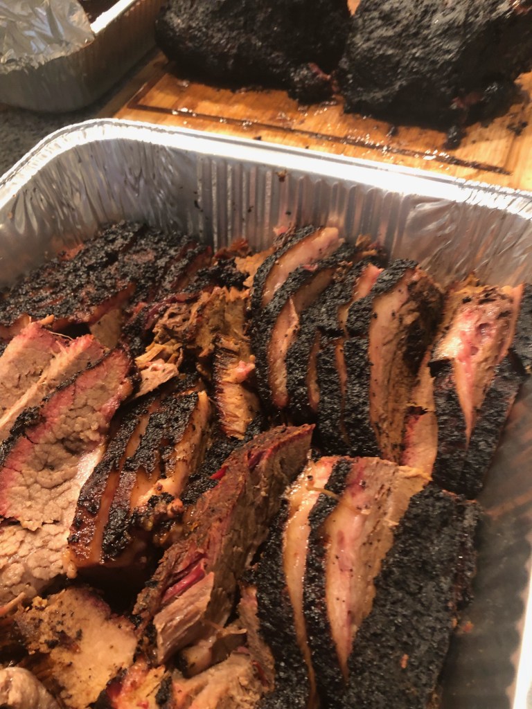A seasoned pit master will tell you it takes several hours to smoke a beef brisket because of the amount of fat and connective tissue. Done right, the result is tender, pull-apart, savory, smokey goodness with a well defined smoke ring. Any short cut in time can reduce the quality of the meat to leather-like jerky. Patience is required for the desired outcome.